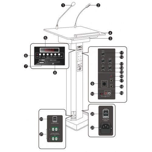 Portable Lectern PA System XLA-PS6200 - Portable Multi-function Lectern PA System with Lamp and Gooseneck Microphone