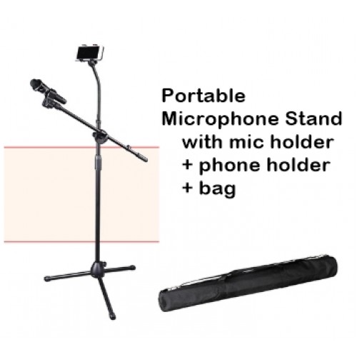 Portable Adjustable Microphone Stand - with mic holder, phone holder and bag - XMS-F103B